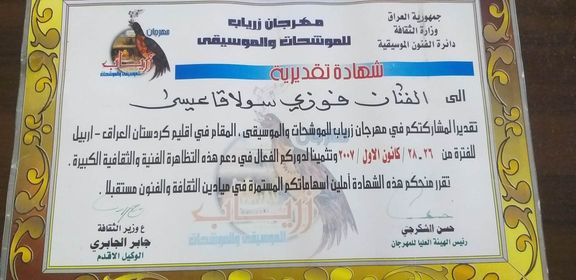 عمري ألفني تجاوز خمسة واربعون سنة واغني في المناسبات والمهرجانات واجيد انواع ألمقامات والنوتة ولي اغاني مسجلة في ألاذاعة الكورية في بغداد وقناة عشتار وانا عضو في نقابة الفنانين ألعراقيين ونقابة فناني كوردستان وجمعية ألموسيقيين العراقيين واحمل العديد من ألشهادات ألتقديرية