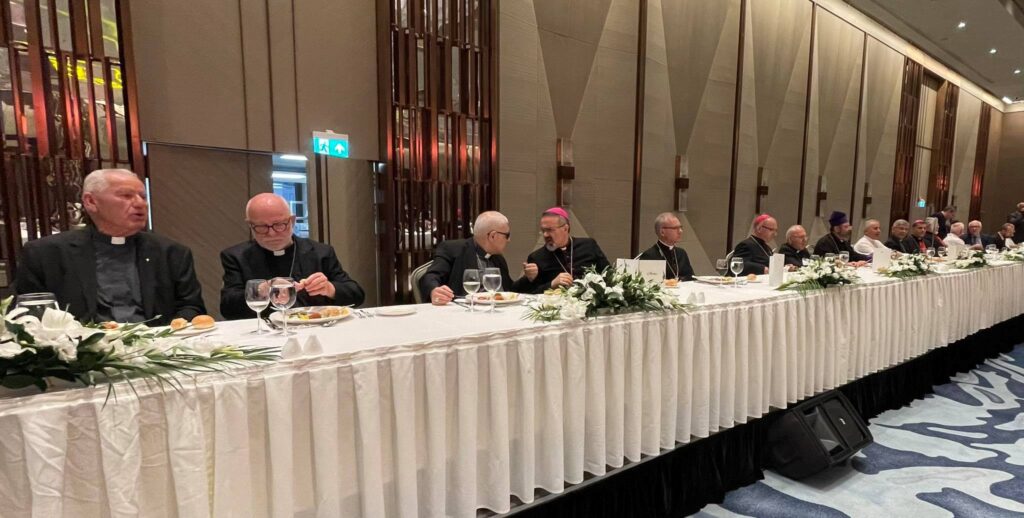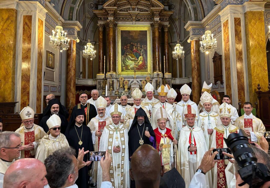 وحضور عدد من اساقفة الكنائس الشقيقة والاباء الكهنة الافاضل والرهبان والراهبات وجمع غفير من المؤمنين وخاصة من فرنسا.