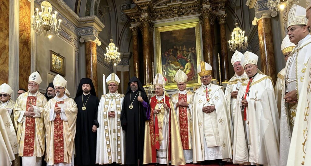 في احتفال مهيب مساء يوم الأحد 16 تموز 2023 في كاتدرائية الروح القدس في اسطنبول ترأس غبطة أبينا البطريرك الكاردينال مار لويس روفائيل ساكو مراسيم الرسامة الاسقفية للمطران الجديد: مار صبري ايشو انار رئيساً لاساقفة ابرشية ديار بكر الكلدانية في تركيا، بمشاركة غبطة البطريرك ماشاليان للارمن في تركيا وسعادة السفير البابوي المطران ماريك سولينسكي ومطران بونتياس لالن القادم من فرنسا واساقفة الكنيسة الكلدانية: توما ميرم، رمزي كرمو، سعد سيروب، فرنسيس قلابات، عمانوئيل شليطا، باسيليوس يلدو، نجيب ميخائيل وفيلكس الشابي.