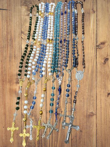عشرة دقائق أو أكثر، وهذا يعتمد حسب صحتي، ولكن هذا لا يمنعني من إنجاز عملي. وبالتأكيد توجد طلبيات الزبائن، وأعمل حسب توصية الزبون وتجهيز التصاميم لمن يرغب باقتنائها. إنّ عملي ليس محصورًا بعمل مسبحة الصليب، وإنما يمتد لعمل قلادات وأساور وغيرها من الاكسسوارات.