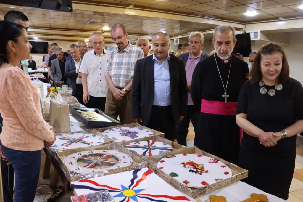 أفتتح المعرض بيد الخوري فيليبوس داود راعي كنيسة مار نرساي بدهوك و السيد اوكر ملك اسماعيل رئيس المجلس القومي الآشوري/ شيكاغو_ ايلينوي و السيد يعقوب كوركيس السكرتير العام للحركة الديمقراطية الآشورية و السيدة بهيجة داود رئيسة الاتحاد. بحضور و مشاركة ضيوفنا الكرام كل من السادة آنفي الذكر و عدد من أعضاء المكتب السياسي و اللجنة المركزية للحركة الديمقراطية، السيد زومايا ادم السكرتير العام لأتحاد الطلبة و الشبيبة الكلدوآشوري، الكاتب يعقوب أبونا، وفد من المركز الثقافي الآشوري، الأساتذة الأفاضل في قسم التعليم السرياني السيد اكد يوحنا مدير اعدادية دهوك المهنية و السيدة ايفان شليمون مشرفة تربوية للغة السريانية و مجموعة من مدراء مدارسنا السريانية في الاقليم، الرائد هيفاء محمود ضابط تحقيق في مديرية مناهضة العنف ضد المرأة و جمع غفير من أبناء شعبنا من داخل الوطن و المهجر الذي أضفى رونقاً جميلاً.