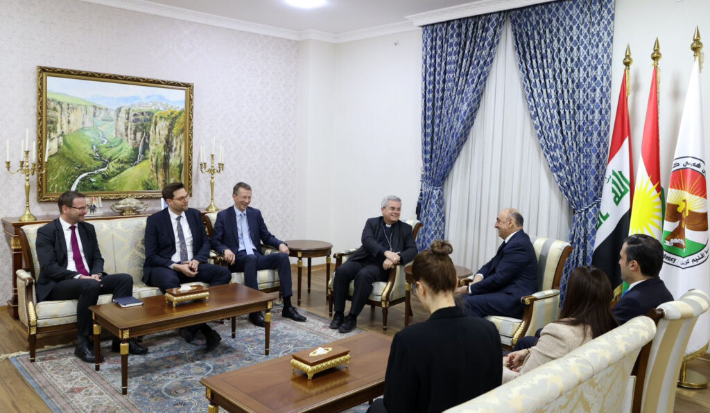 ئەمڕۆ پێنجشەممە 2025/2/6 بەڕێز فەوزی هەریری، سەرۆکی دیوانی سەرۆکایەتیی هەرێمی کوردستان، پێشوازیی لە شاندێکی هاوبەشی هەردوو ڕێکخراوی (کۆنگرەی ئەساقیفەی ئەڵمان، کۆمەڵەی ئەڵمانیی بۆ خاکە پیرۆزەکان) کرد کە لە ژمارەیەک پیاوی ئایینی و کەسایەتیی زانستیی ناوەندە ئایینییەکانی مەسیحی لە ئەڵمانیا، پێکهاتبوون.
